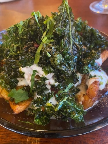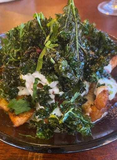 Spiced parsnips & crispy kale served on a little bit of yoghurt with a sprinkling of pomegranate seeds (inspired / stolen from one of Dishooms festive offerings!)
